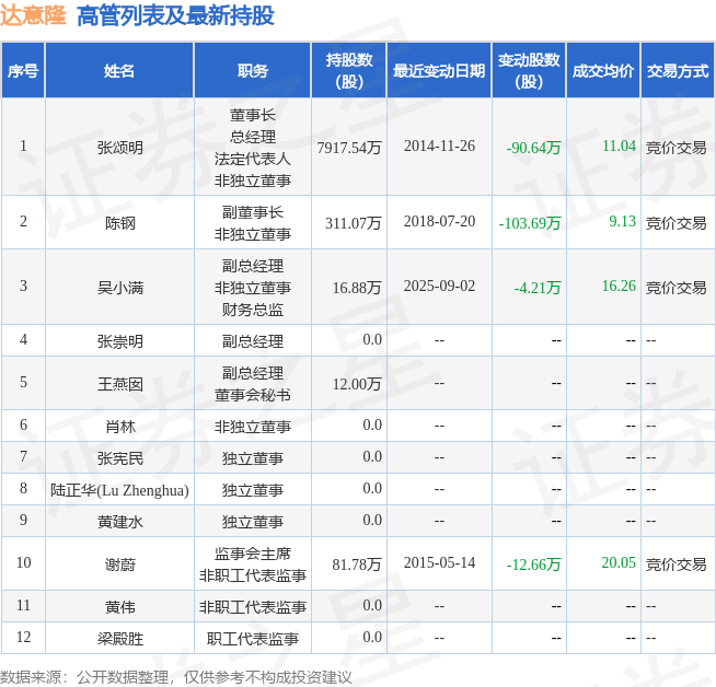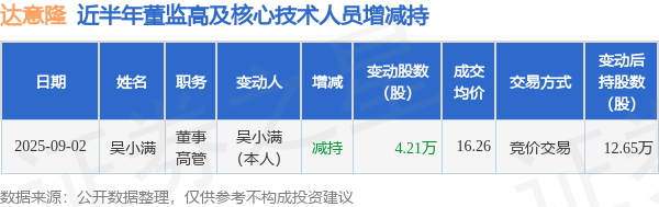 达意隆近半年内的董监高及核心技术人员增减持详情如下: